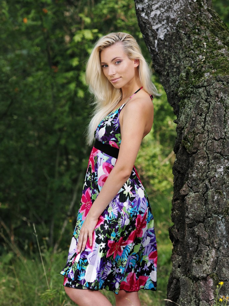 Adele B strips her sexy summer dress outdoors and shows us her gaping vagina.