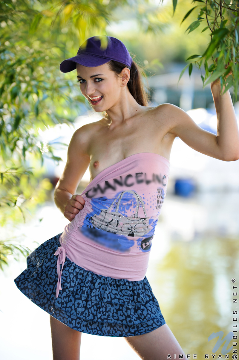 Hot teen gal Aimee Ryan strips her mini skirt and shows us her fuckable tight ass.
