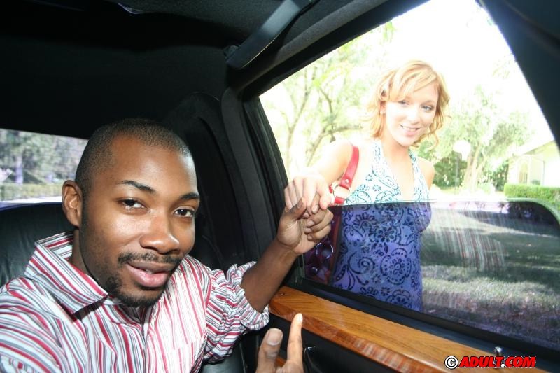 Alexa Lynn takes her clothes off in the back of the car and blows an ebony cock.