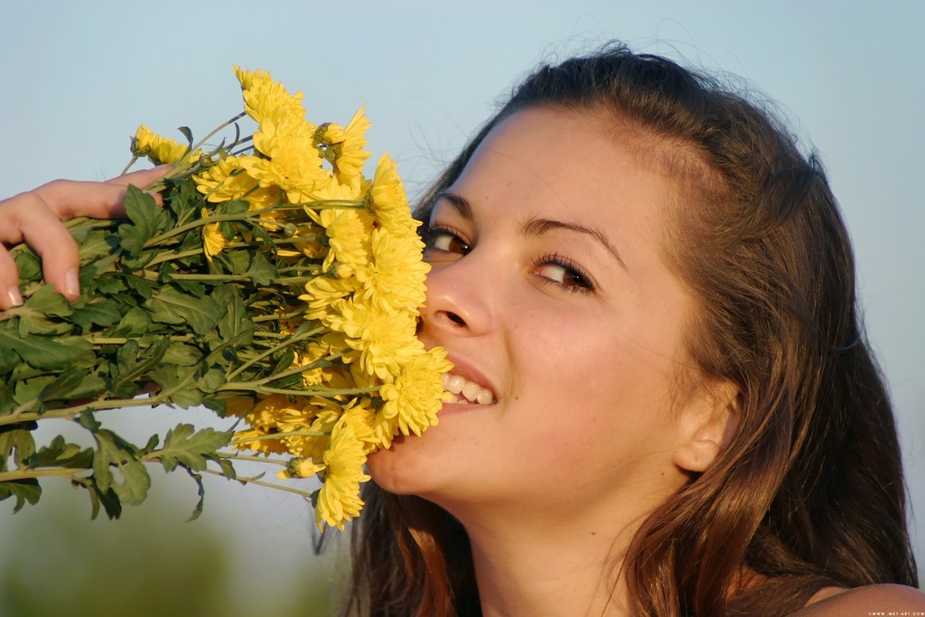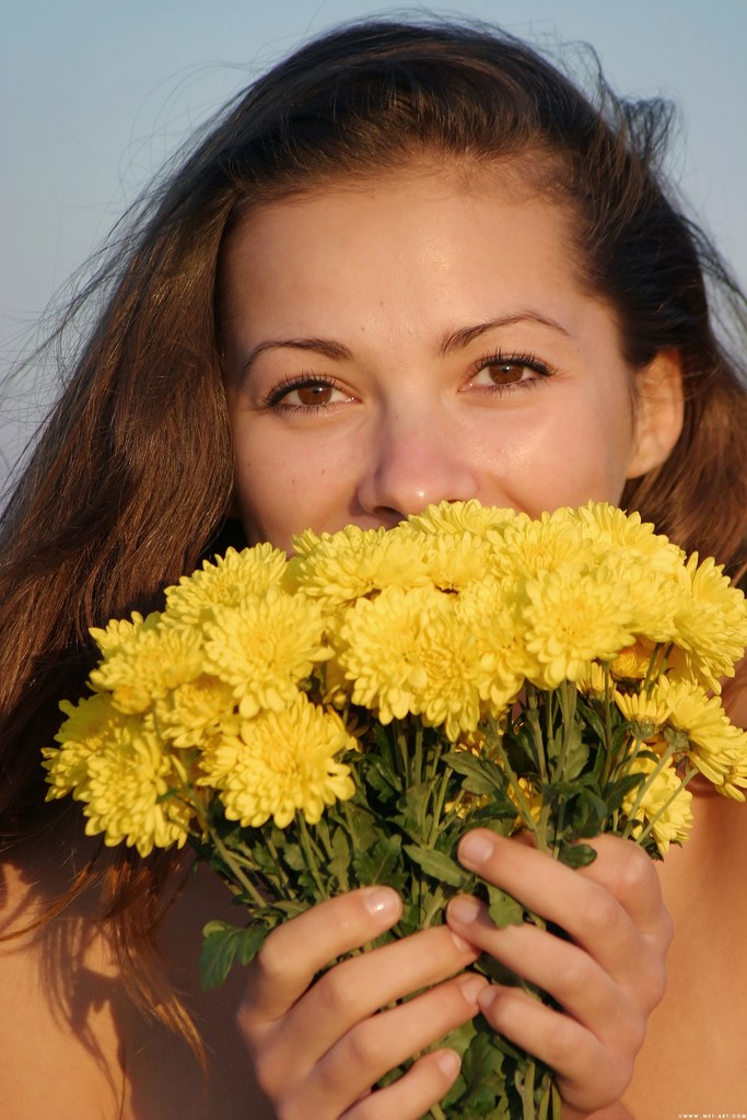 Alisa A takes her sexy yellow summer dress off and shows her perky breasts.