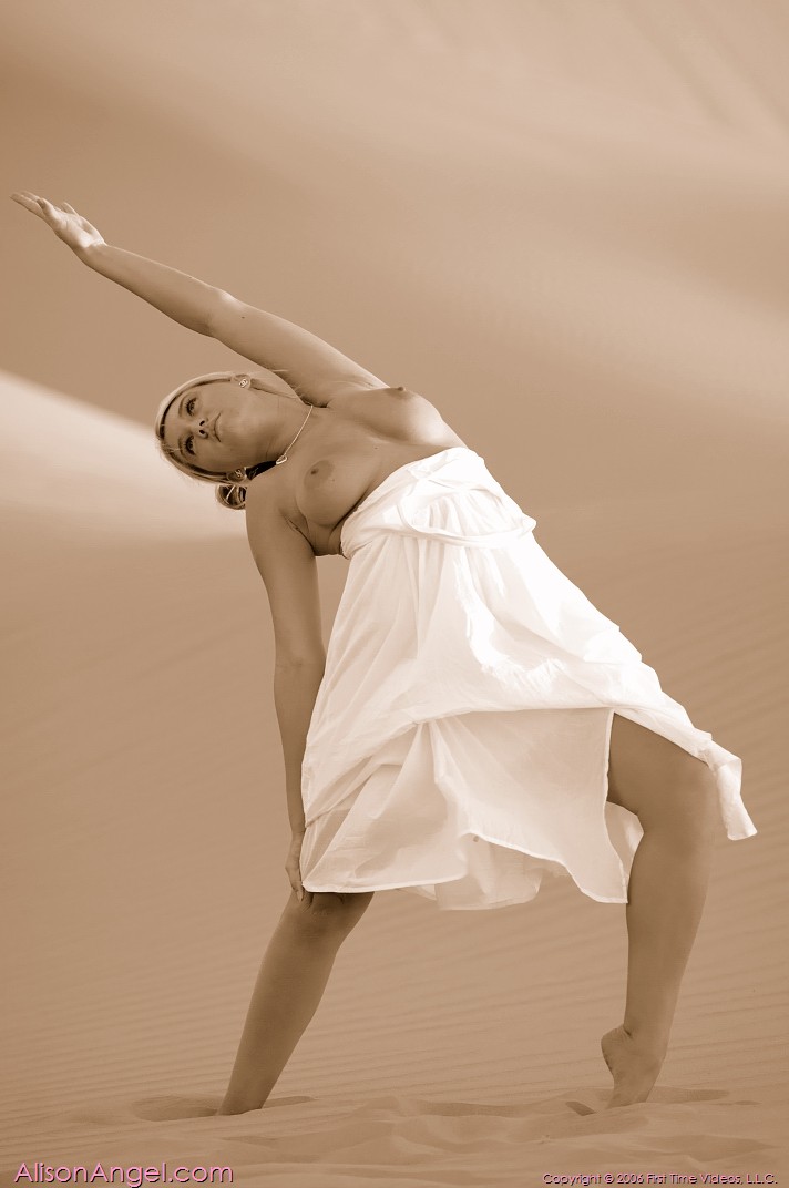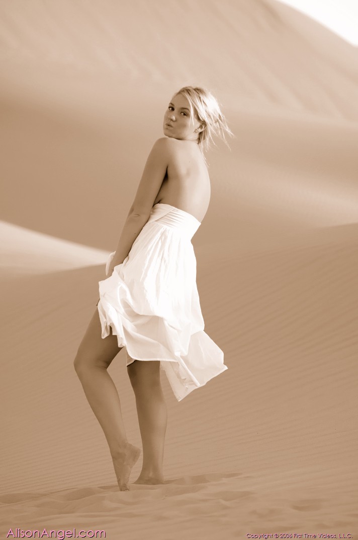 Alison Angel loves sand so much that she goes to a desert to masturbate in the sand.