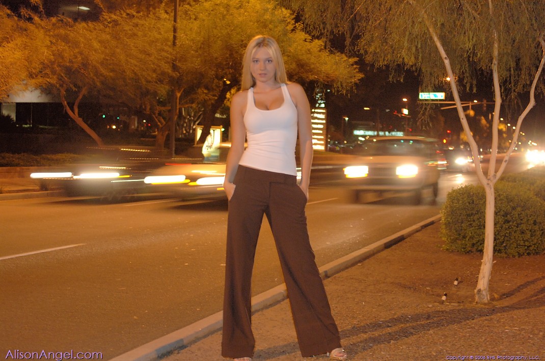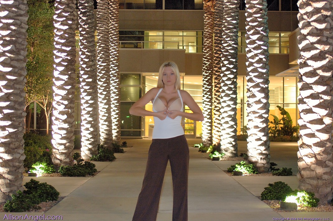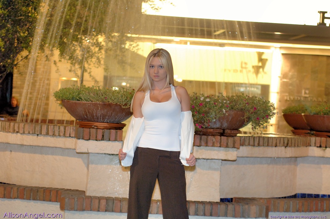 Alison Angel gets off hre shirt and shows her perfect ass and cute, natural boobies.