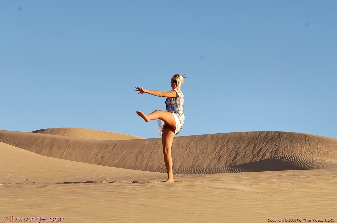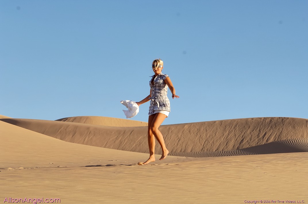 When her car broke in desert, Alison Angel decided to striptease in the sand.