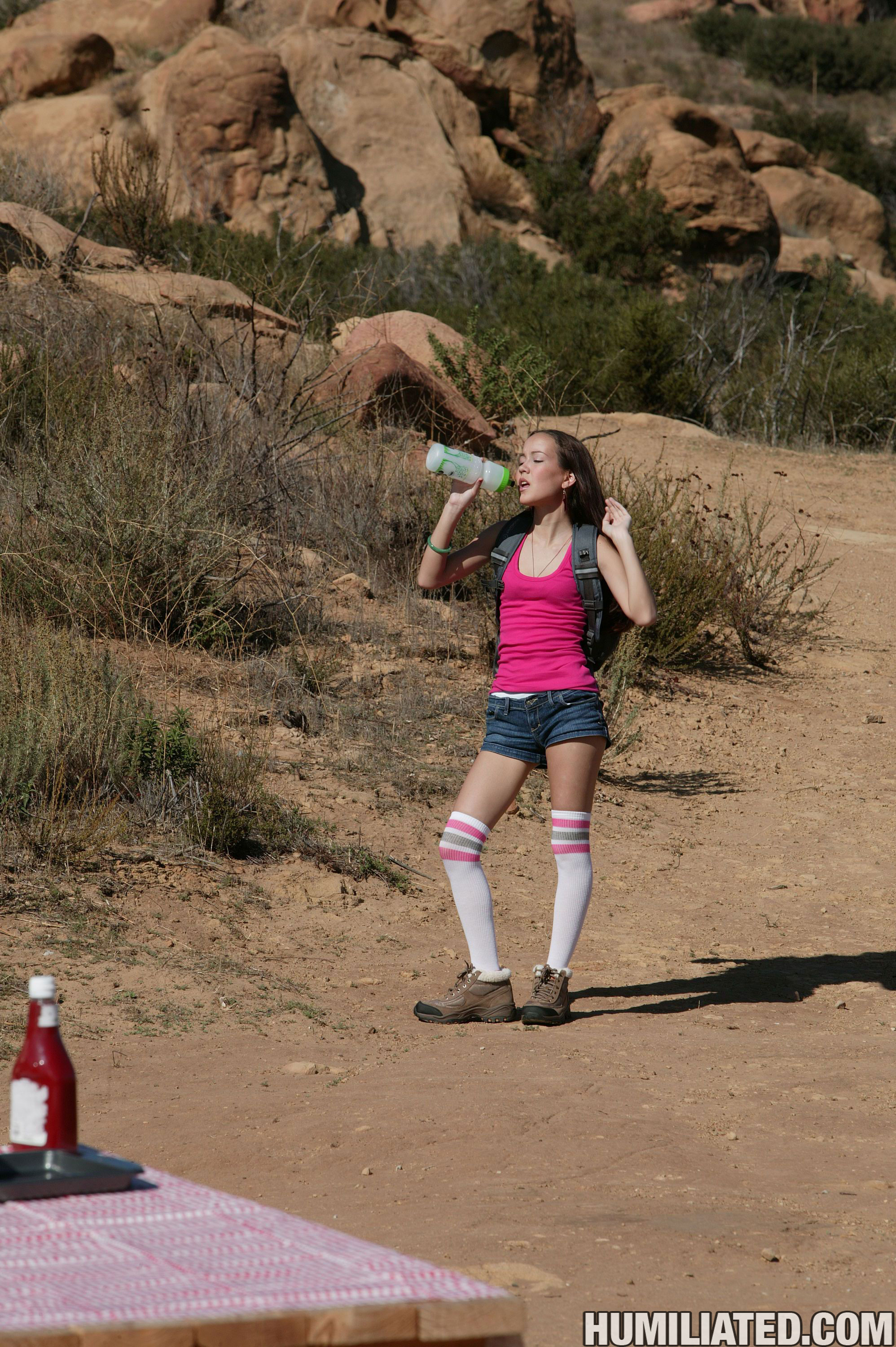 Alluring young broad in bondage gets nailed by her freaky lover outdoors. She just loves it