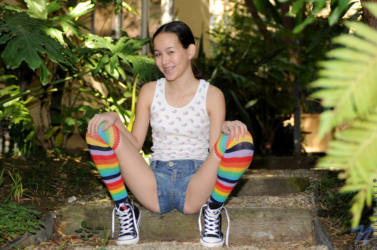 Amai Liu takes all of her clothes before the camera and shows us her hungry muff.