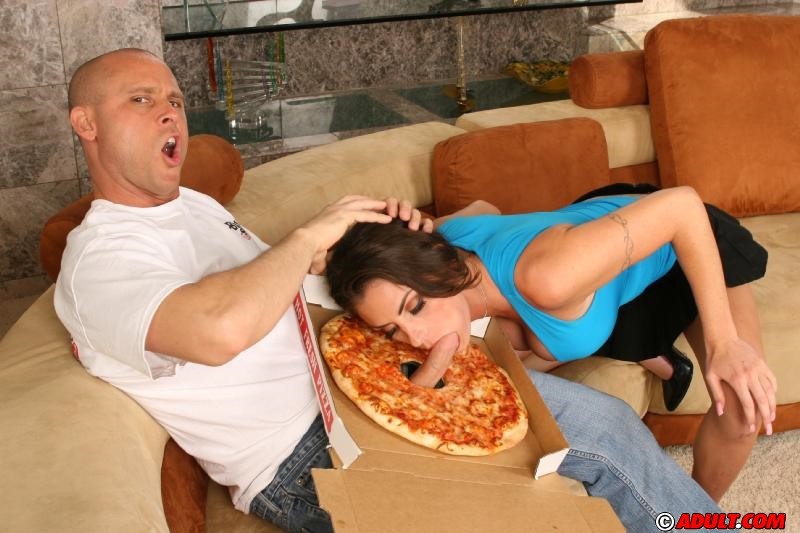 Amanda Emino takes her slutty skirt for the pizza dude and rides on his hard boner.