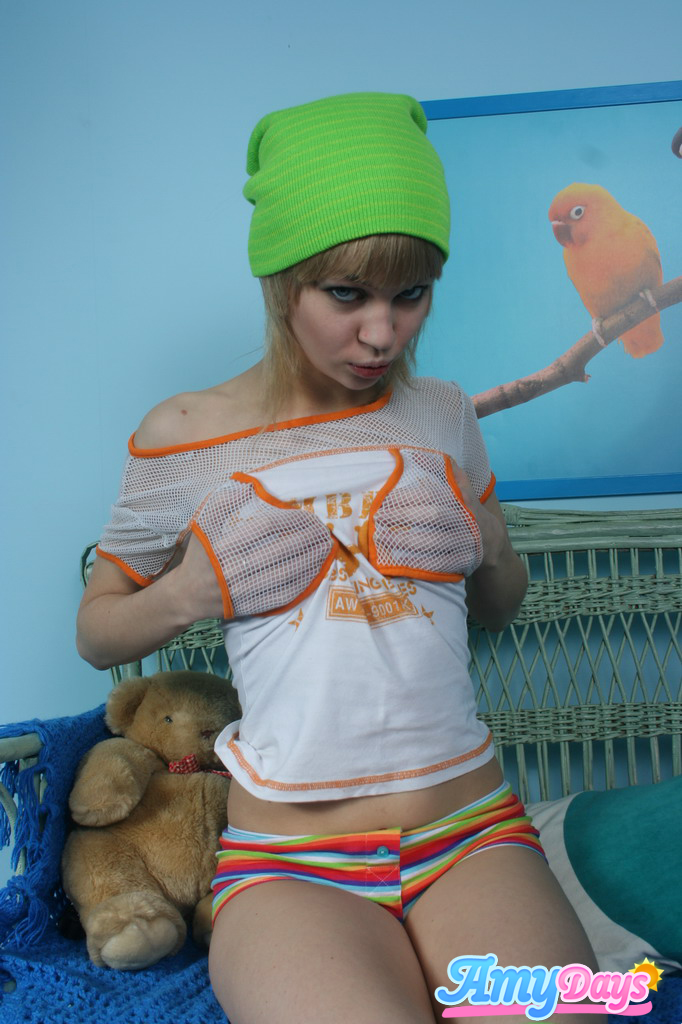 Cute teen gal Amy Days takes off her sexy lingerie and shows her curvy body.
