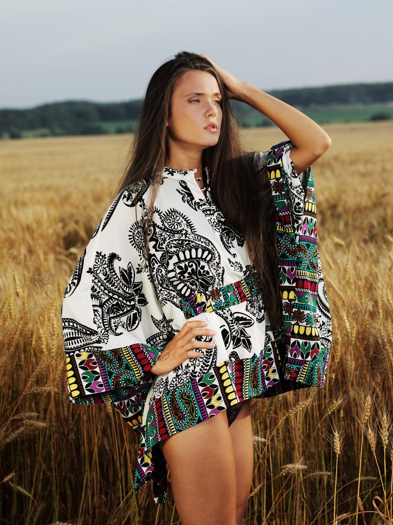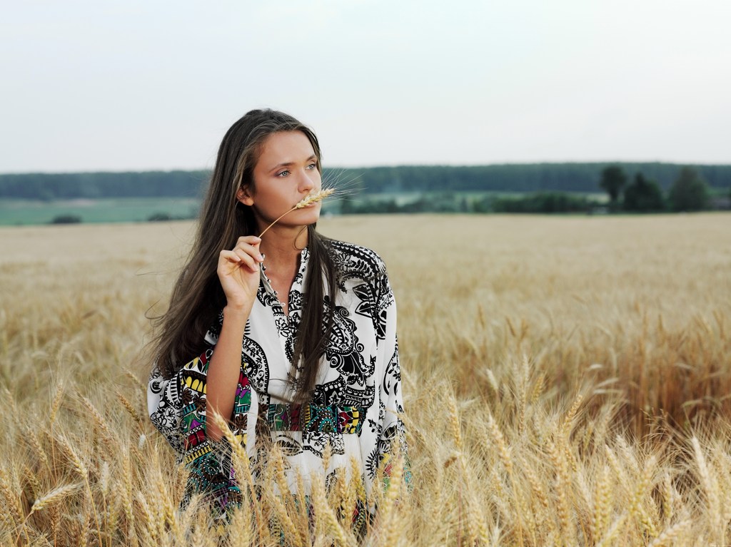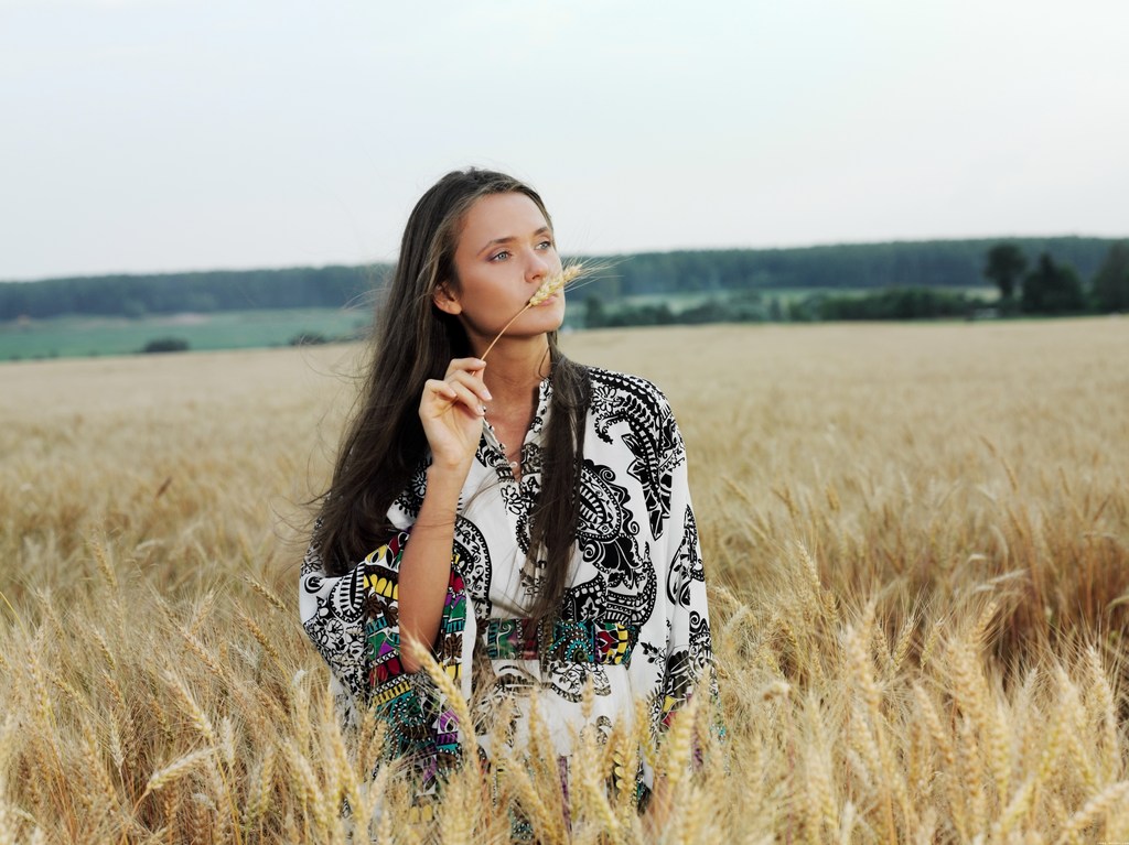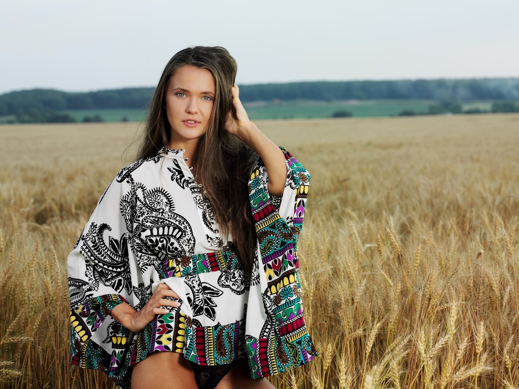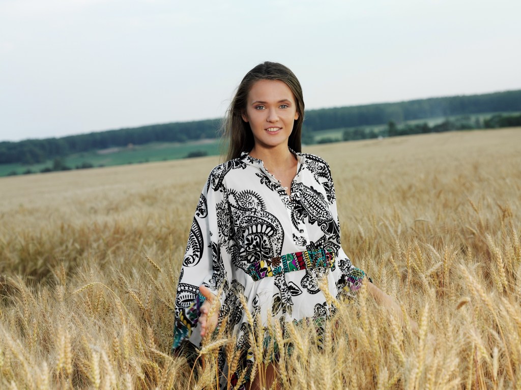 Anastasia Petrova takes her clothes off outdoors on the field and shows her ass.