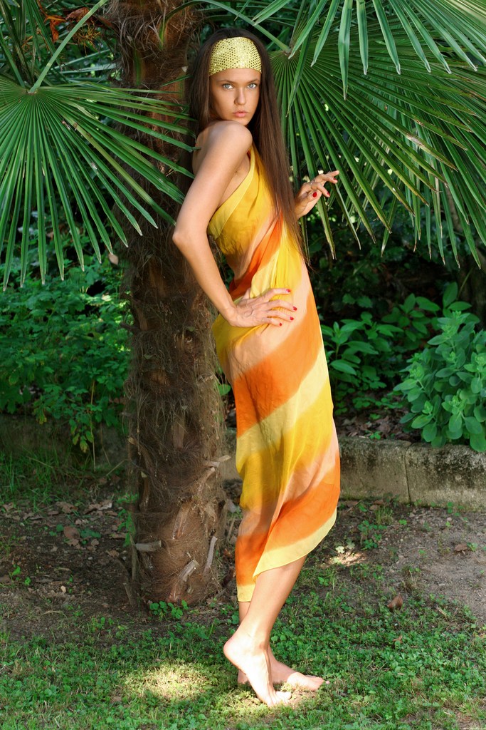 Anastasia Petrova strips her sexy summer dress outdoors and shows her curvy body.