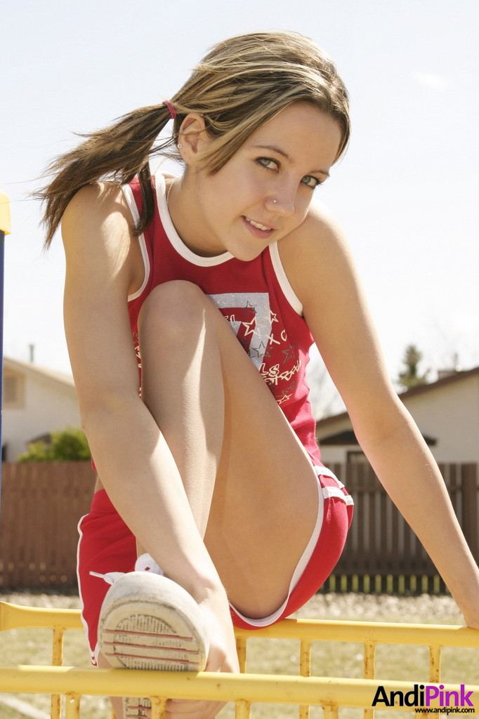 Pigtailed teen gal Andi Pink...