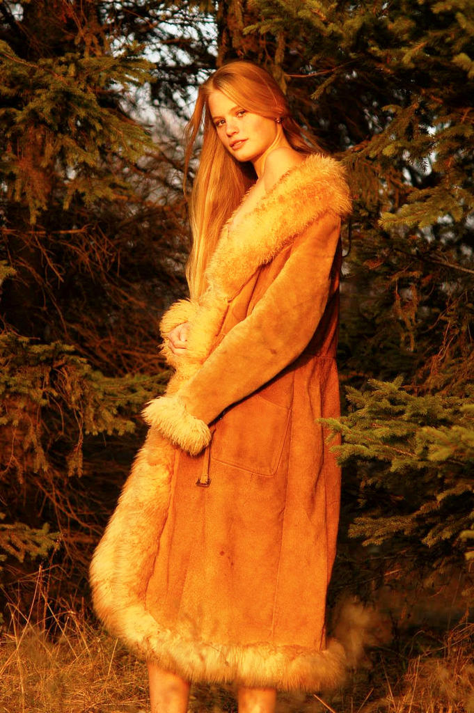 Andrea C takes her fur coat off outdoors and shows us her fantastic teen body.