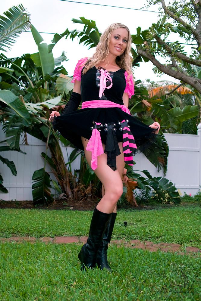 Smoking hot blonde babe Anita Dark strips her mini skirt and teases in black boots.