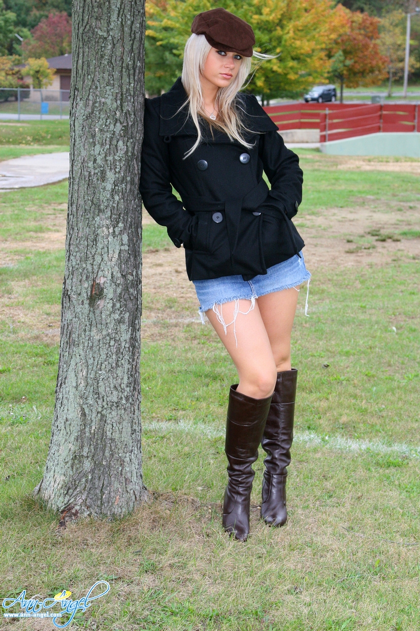 Ann Angel takes her slutty mini skirt off outdoors and shows us her amazing ass.
