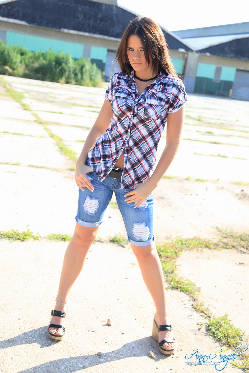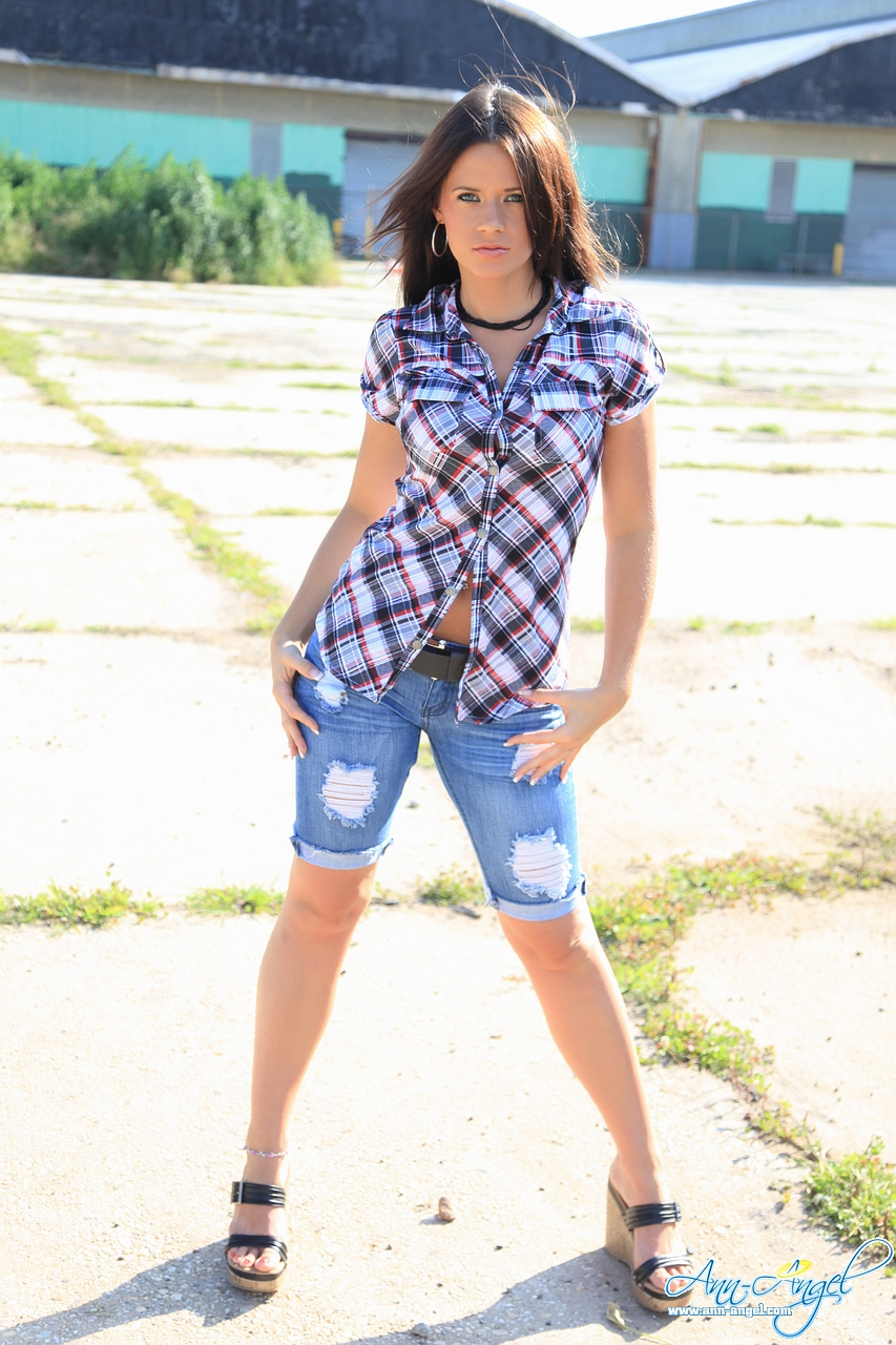 Ann Angel strips her tight blue jeans off and shows us her amazing foxy booty.