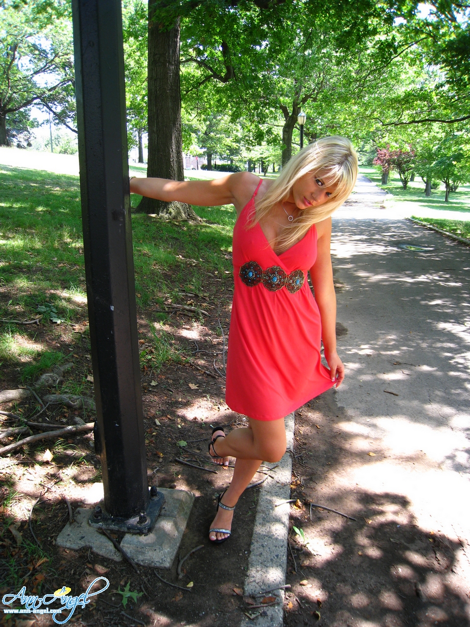 Ann Angel takes her sexy dress outdoors and teases us with her amazing piece of ass.