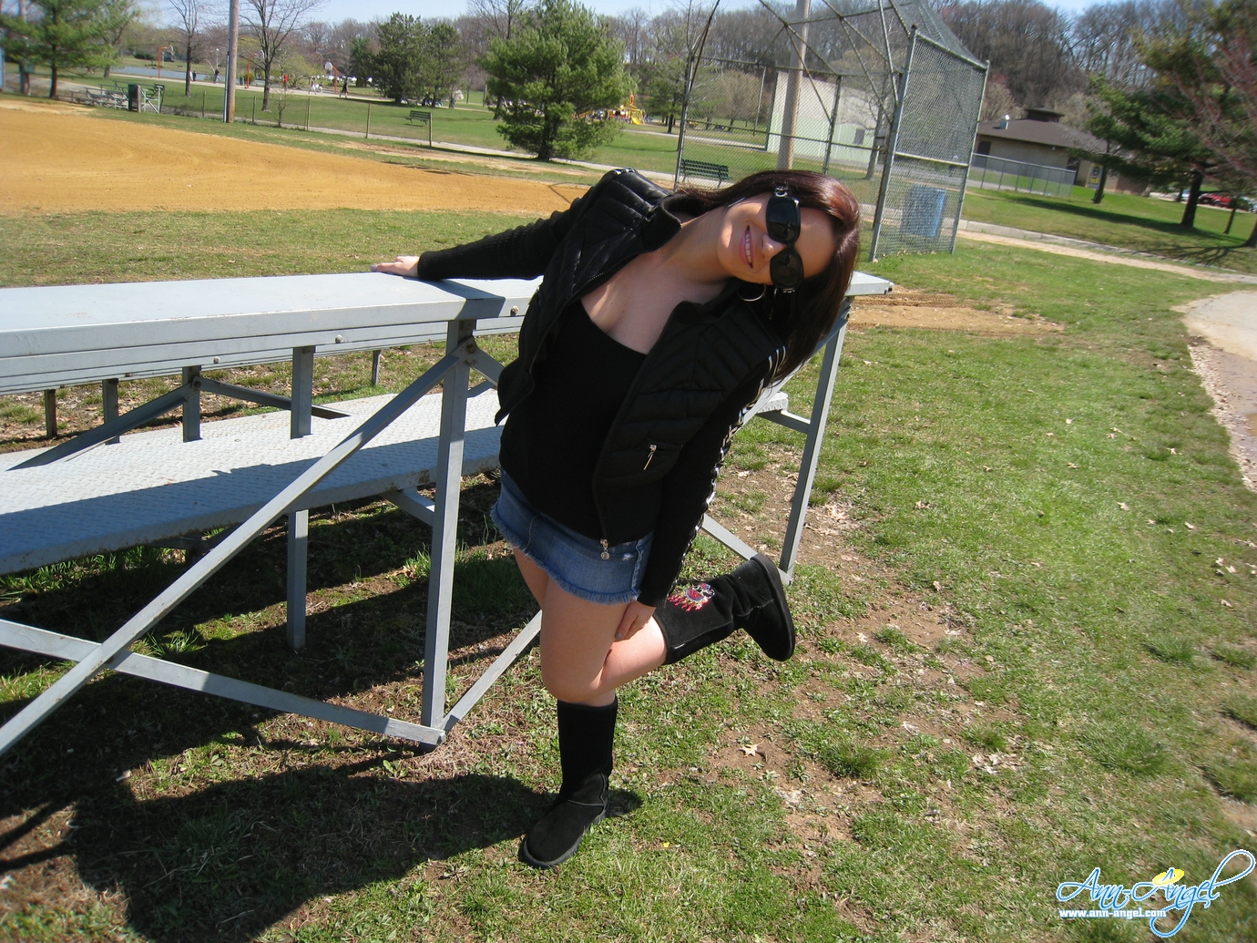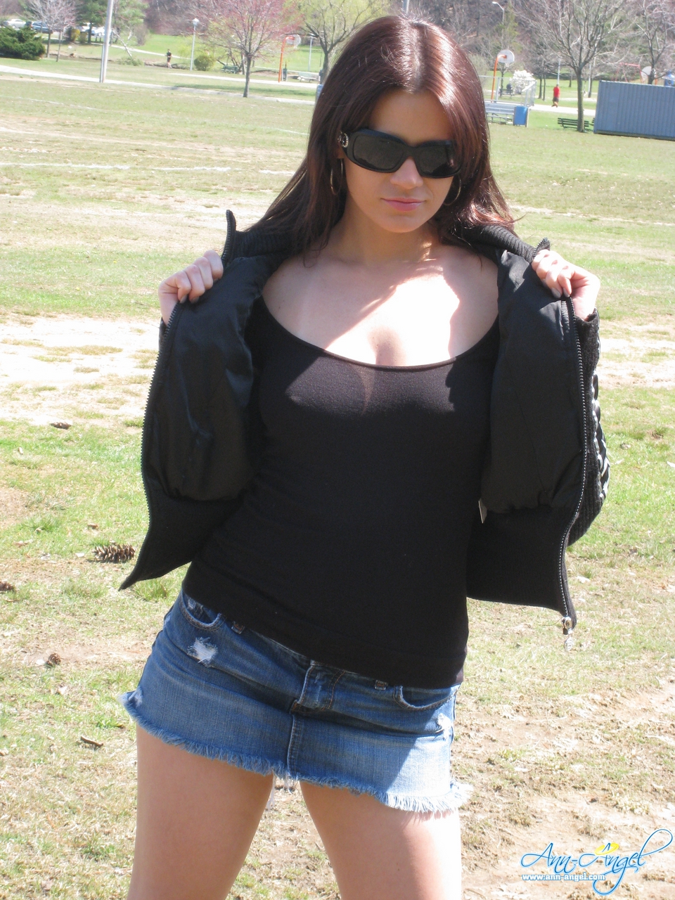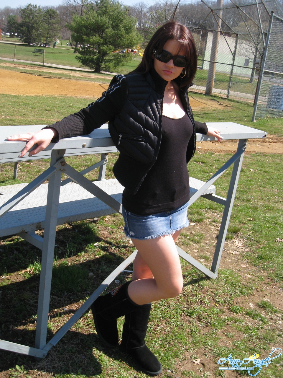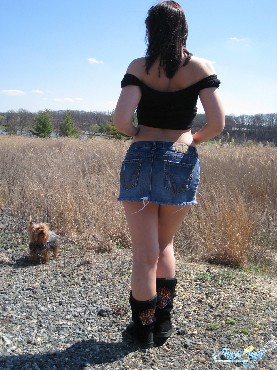 Ann Angel takes her tight denim skirt off and shows us her amazing foxy booty.