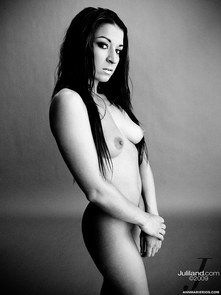 Smoking hot brunette babe Ann Marie Rios takes off her clothes and shows off.