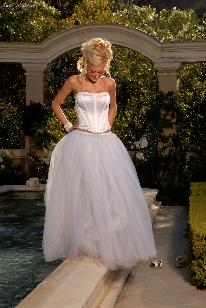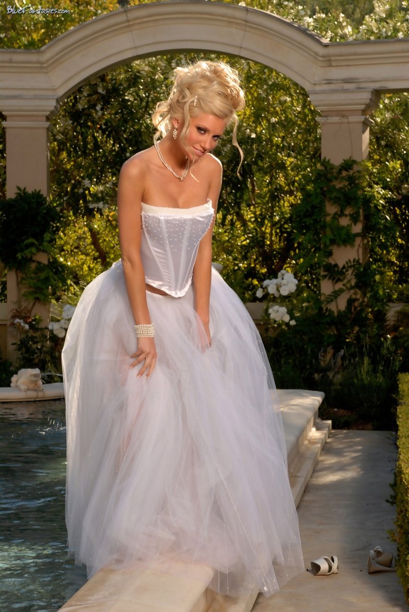 Ann Poll slowly strips her classy white wedding gown outdoors and shows her rack.