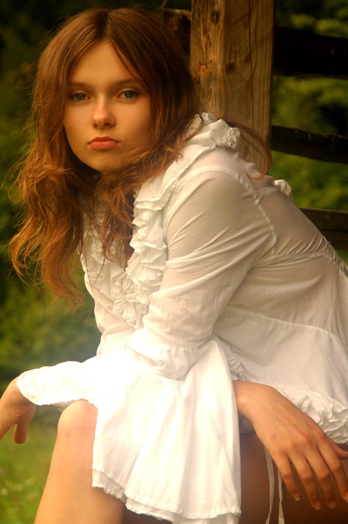 Anna S strips her white see through lingerie outdoors and shows her hairy bush.
