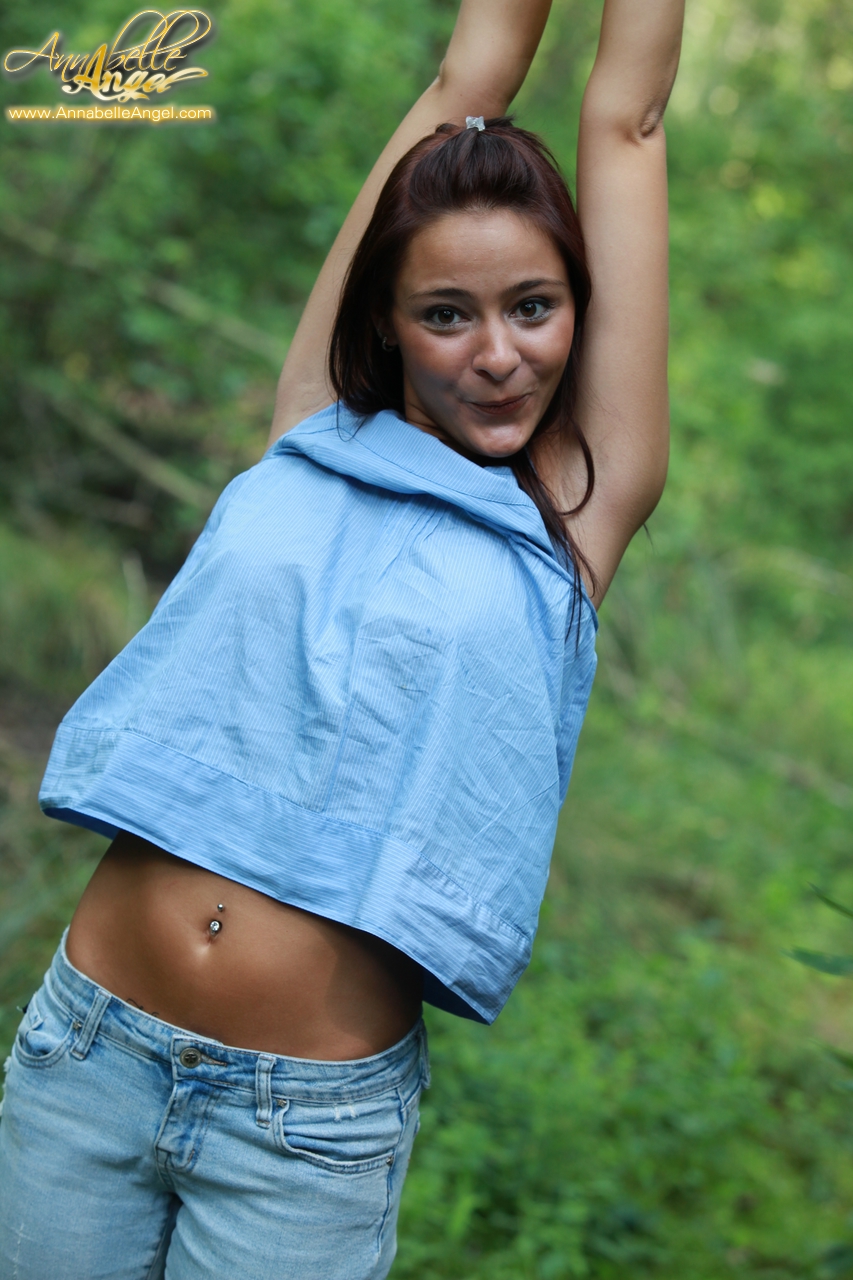 Annabelle Angel strips her clothes outdoors and teases us with her hot tight ass.