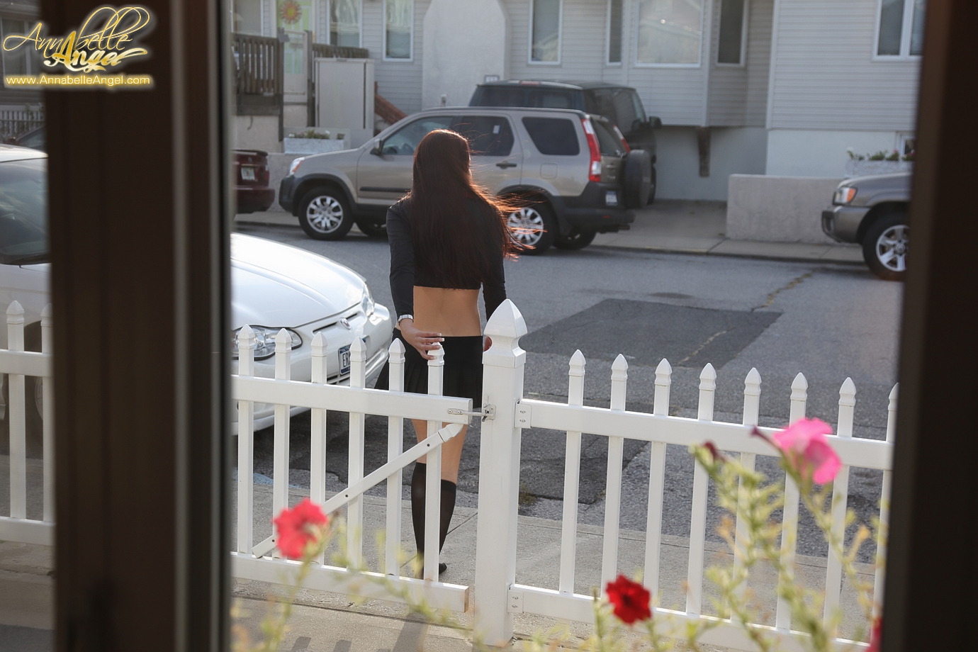 Annabelle Angel takes her slutty black skirt off and shows us her amazing as.