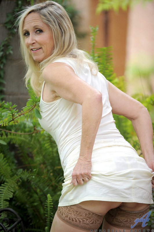 Annabelle Brady removes her sexy white dress off and teases us in stockings.