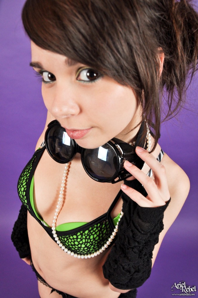 Young cutie pie Ariel Rebel teases with her hot ass and little tits in kinky lingerie.