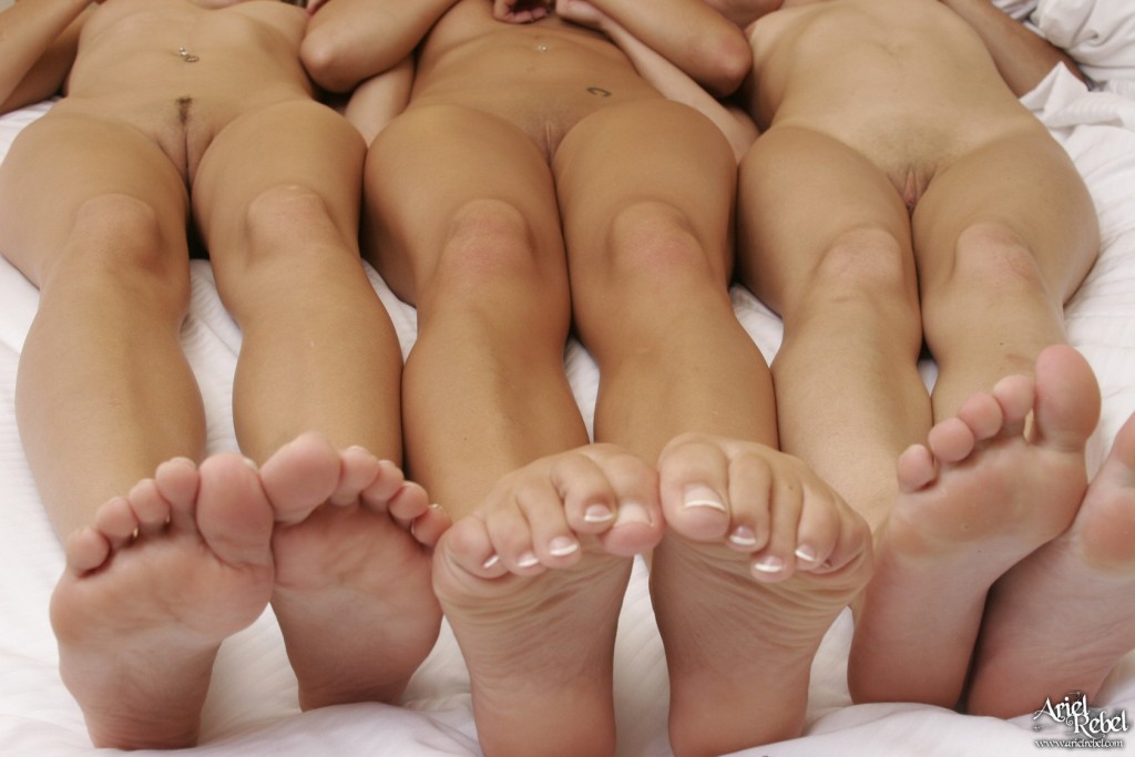 Horny legal babe Ariel Rebel gets into a mind blowing threesome lesbian action.