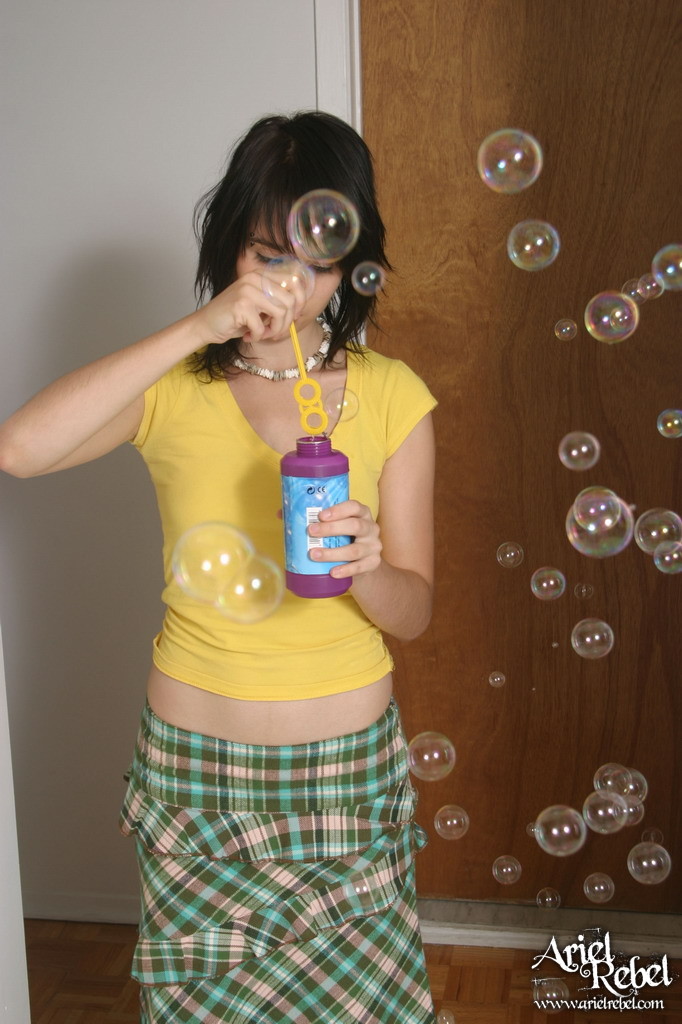 Ariel Rebel blows bubbles and even takes all her clothes off at the same time.