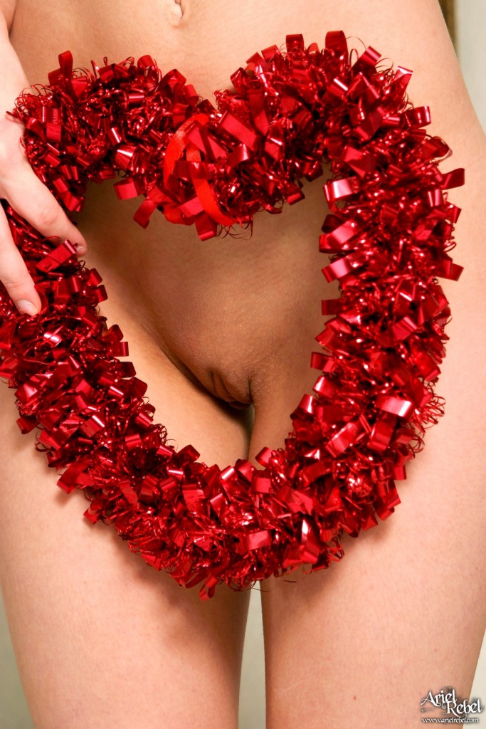Ariel Rebel presents her clean shaved slit to all her fans as a Valentine gift.