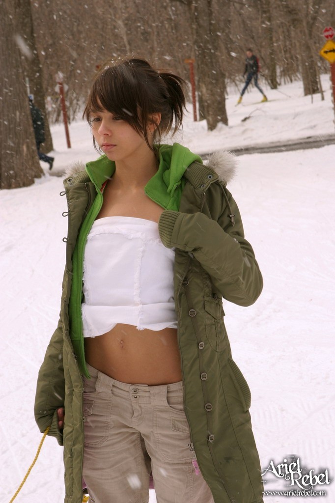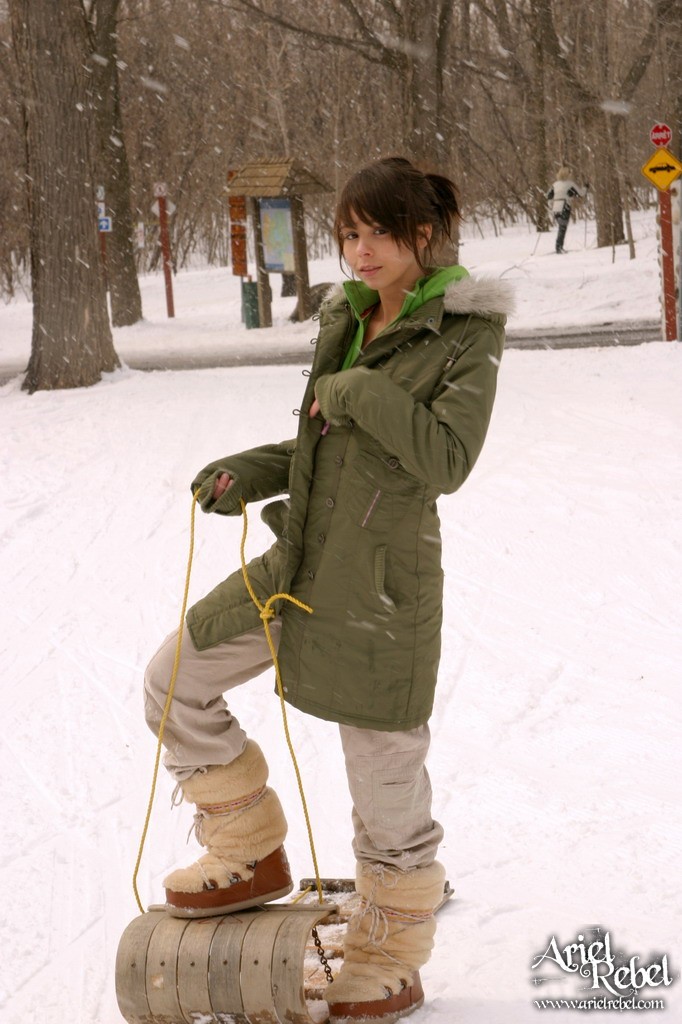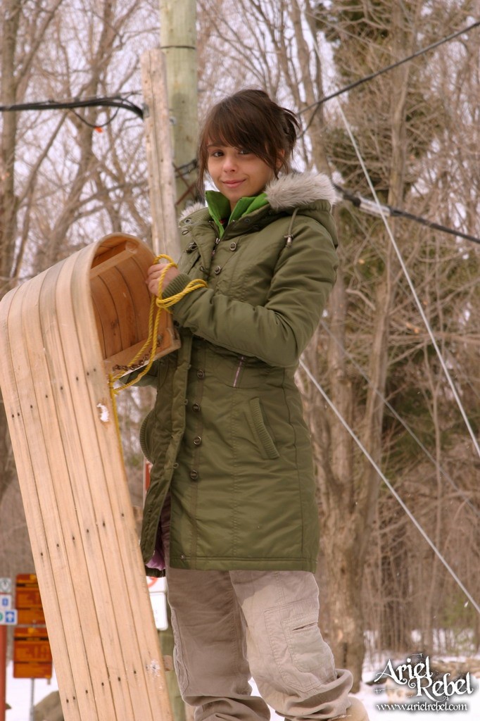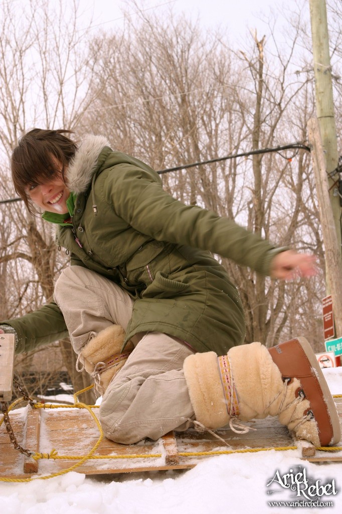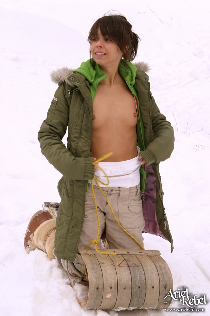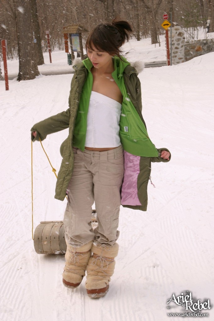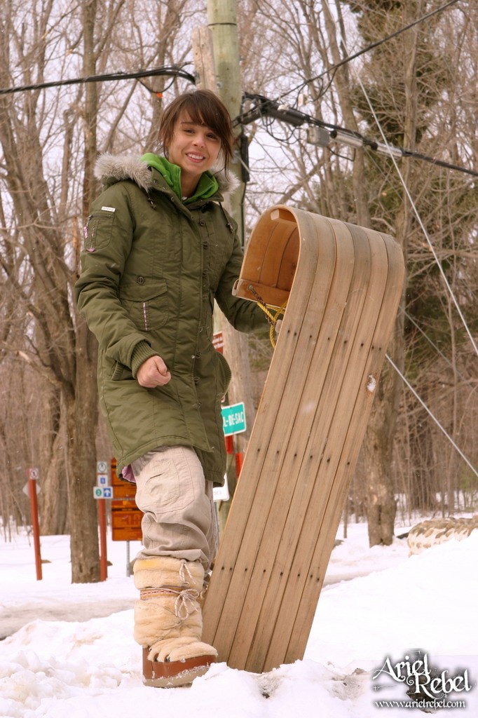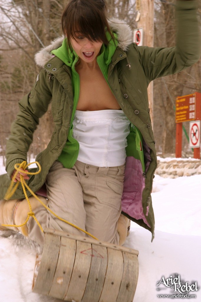 Ariel Rebel sleighs, wallows in snow and even performs a striptease outdoors.