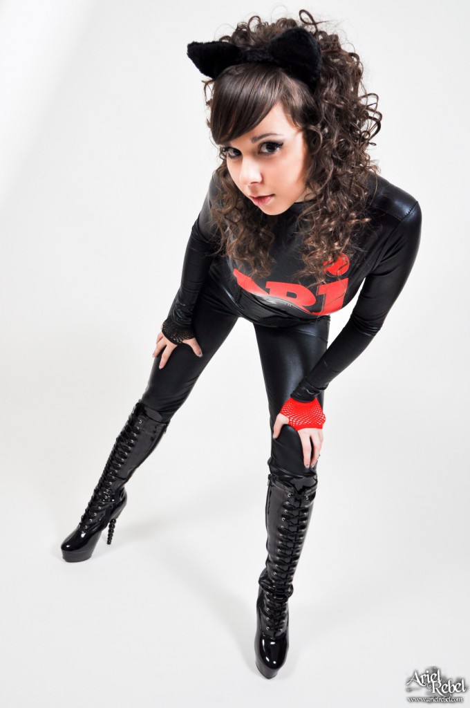 Ariel Rebel puts on a latex catsuit to underline her curves and her naughty nature.
