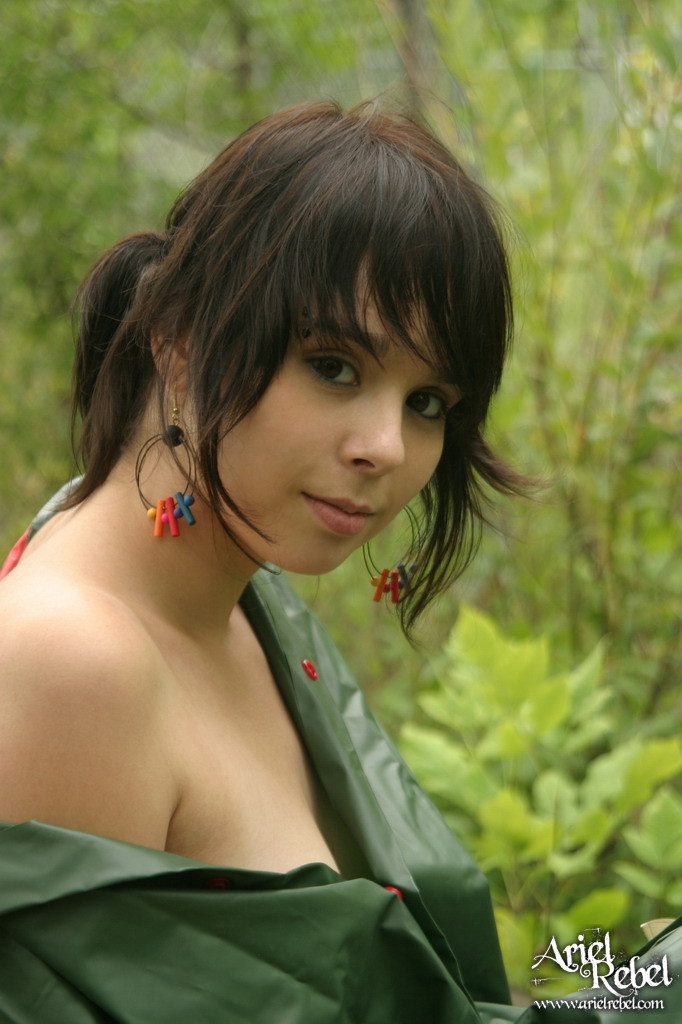 Naughty Ariel Rebel goes to her favorite forest to show off her playful character.