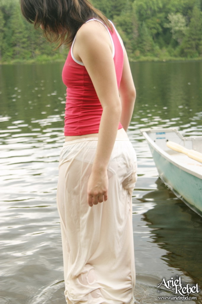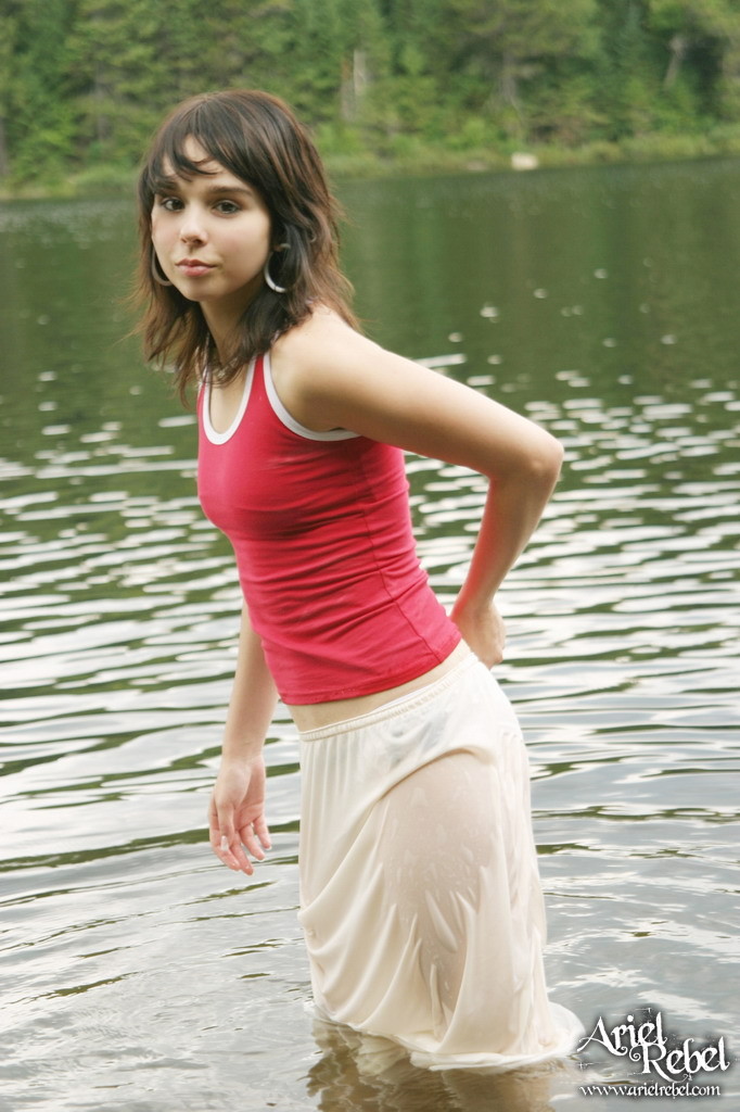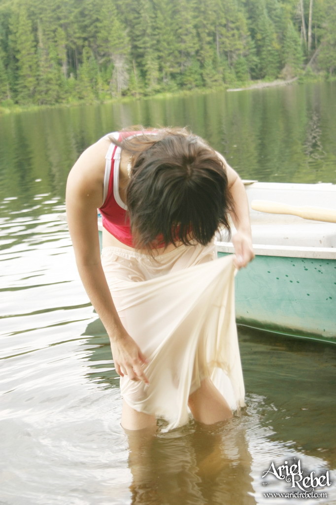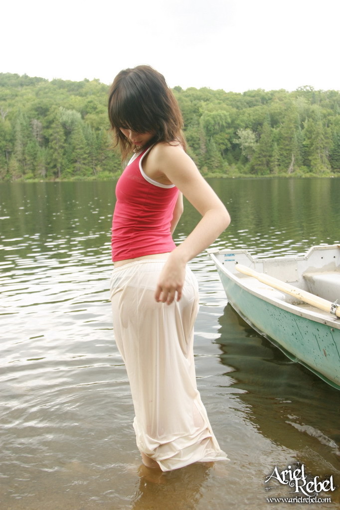 Beautiful solo babe, Ariel Rebel shows her perfect booty while posing at the lake.