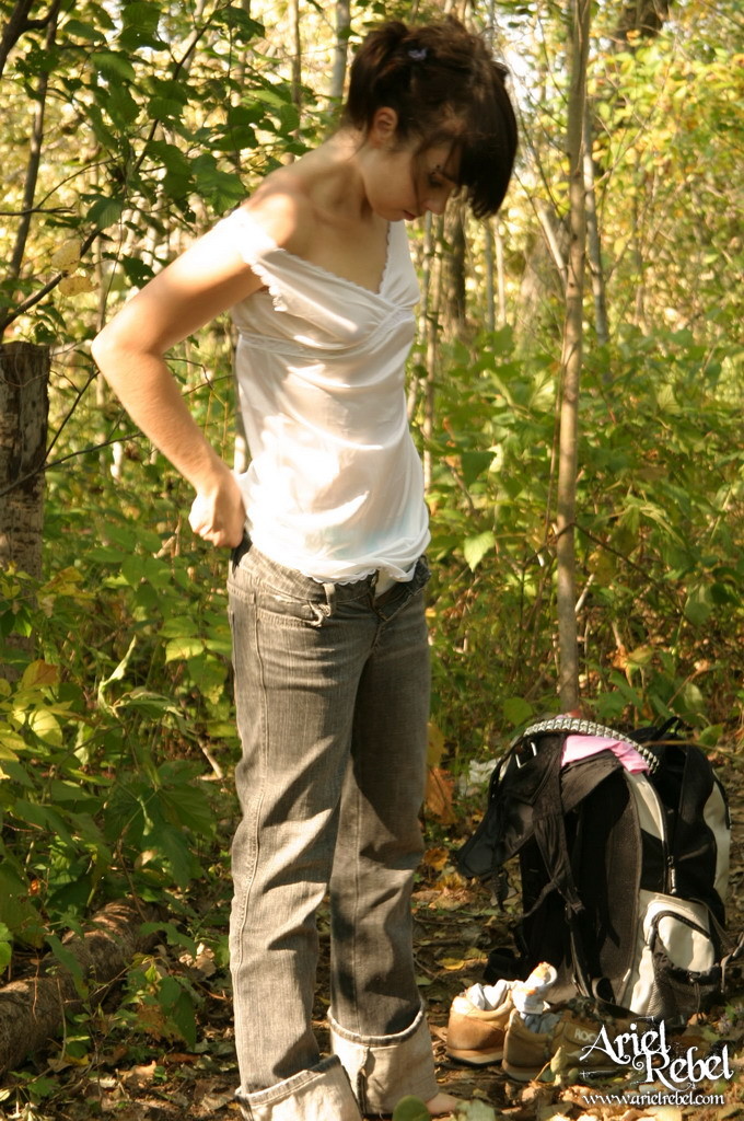 Ariel Rebel loves changing clothes so much that she is ready to do it in a wood even.