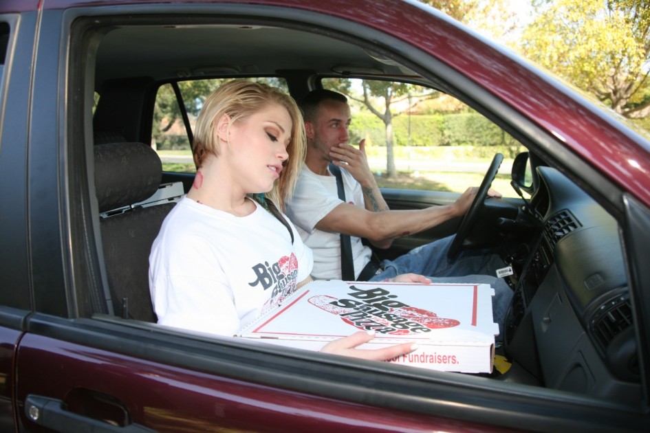 Ash Hollywood takes her clothes of and fucks with pizza dude in black boots.