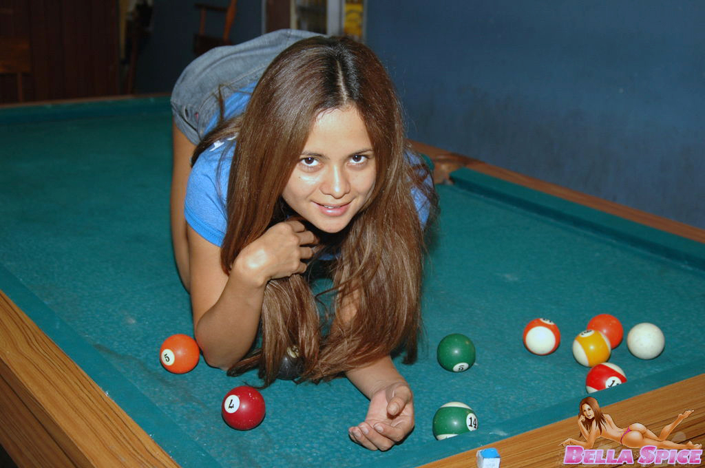 Innocent looking brunette Bella Spice...