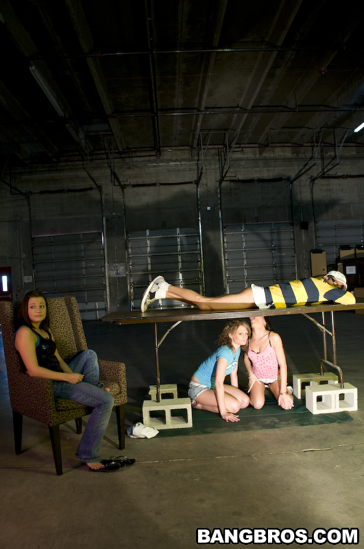 Brandi Belle takes her clothes off under the table and shows her amazing body.