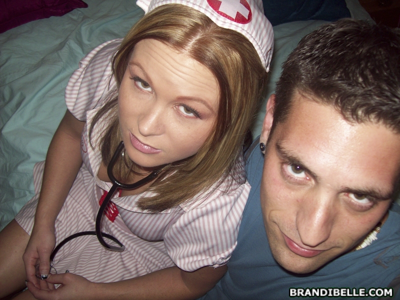 Brandi Belle strips her slutty nurse uniform and then wanks her lover's big dong.