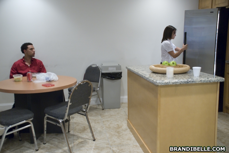 Brandi Belle takes her clothes off at her workplace and gives amazing blowjob.