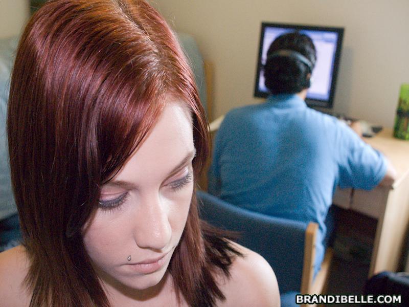 Brandi Belle takes her clothes off and gets banged while her BF plays video games.