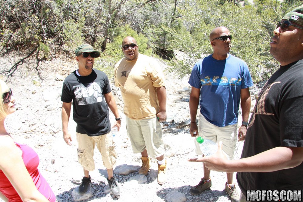 Camryn Cross takes her clothes off outdoors and slurps on huge black boner.