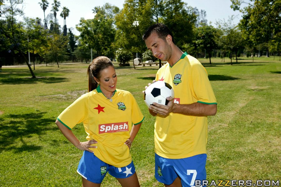 Capri Cavalli gets rid of her football dress, sucks cock and gets her wet cunt fucked.