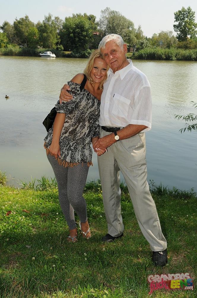 Adorable blonde angel gets banged by dirty old pervert and receives cum shot on her face