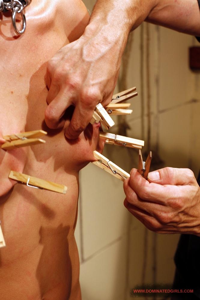 Here you'll find chains, clothes-pegs, dildos and lashes. Everything a hot blonde needs to orgasm