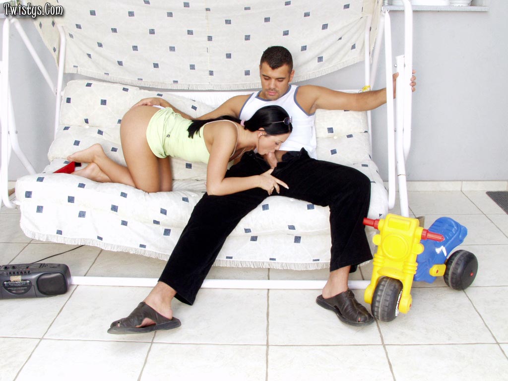 Cristina Bella is sucking a guys dick. She squirts lube on it then gets ass fucked.