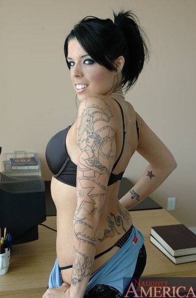 Hot tattooed btunette Demi Marx with sexy booty taking a dick up her shaved cunt.