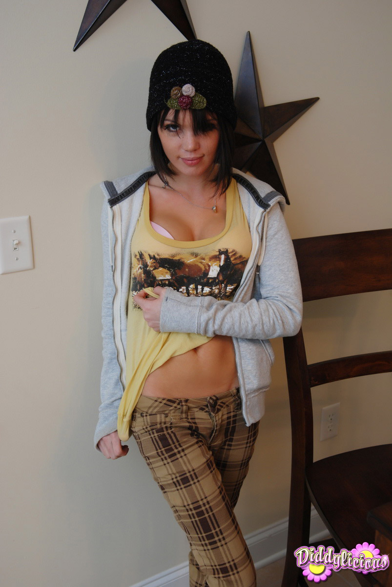Good looking hipster teen babe Diddylicious takes off her jeans and shows her ass.