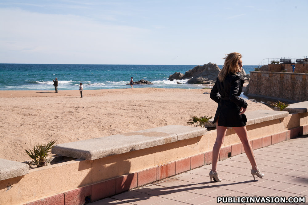 Innocent girlie with long legs went to the beach and found a random fuck buddy.