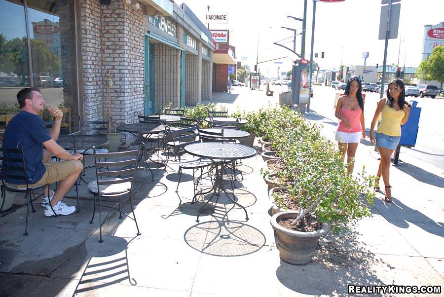 Naughty girlfriends, Elena Heiress and Cassandra Cruz, play with one well-hung lad.